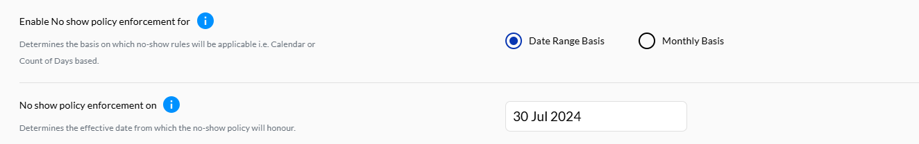 If the value, Date Range Basis is selected then the no-show will identify the users based on the mentioned date and the count of days.Count of days