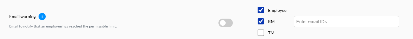 If this value is 5 and operating at a monthly range, then the system will shortlist all those employees who had 5 no-shows in the running month.No-show count for warning mail