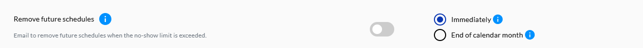 If this is switched on then all the existing future schedules are removed once an employee has exceeded the no-show count limit within the set duration i.e. the monthly range or date range.Action specific email