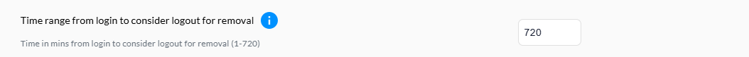b) Time range from login to consider logout for removal