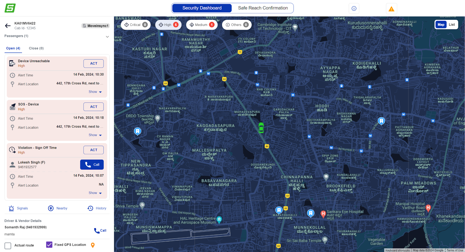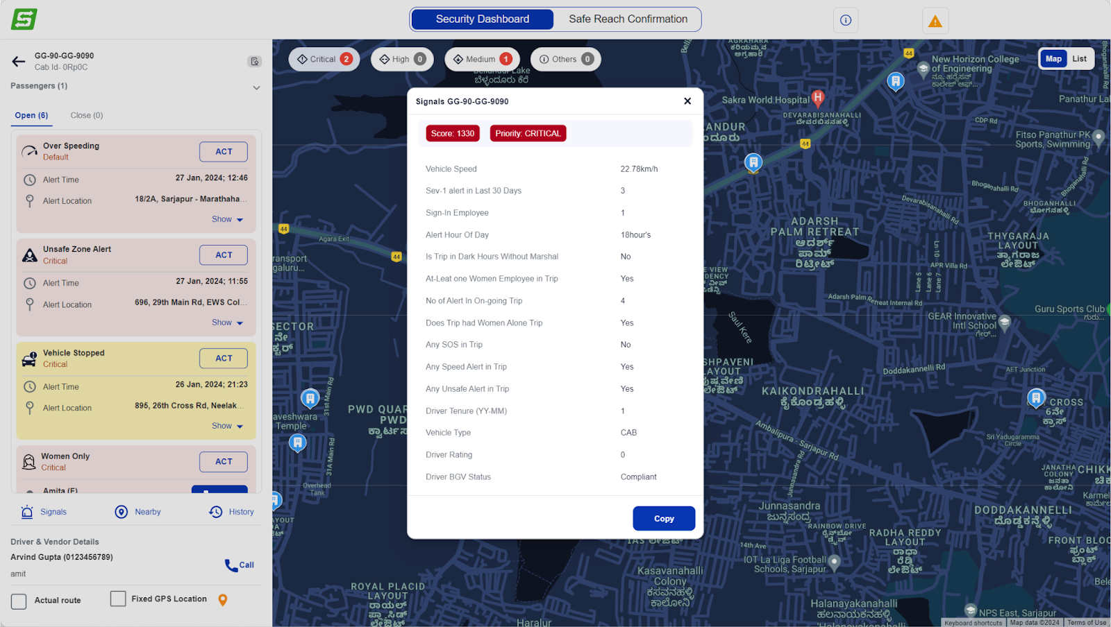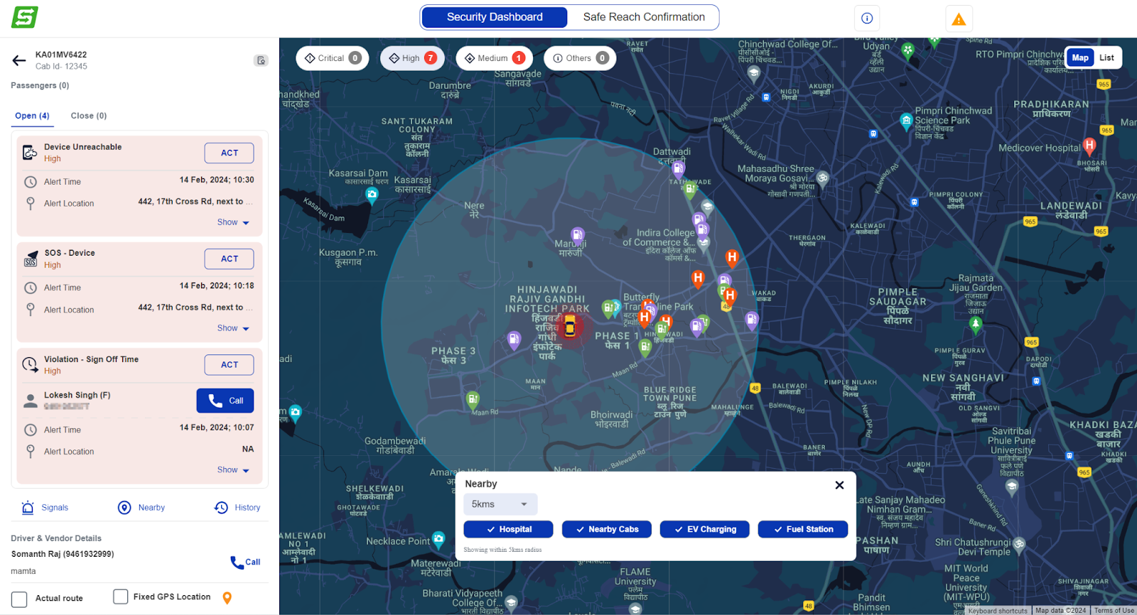 Users can easily navigate through vehicle details, passenger information, and alert specifics with just a few clicks.