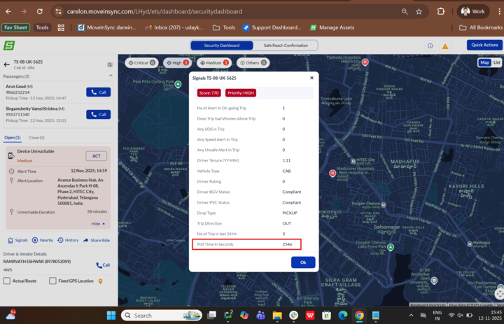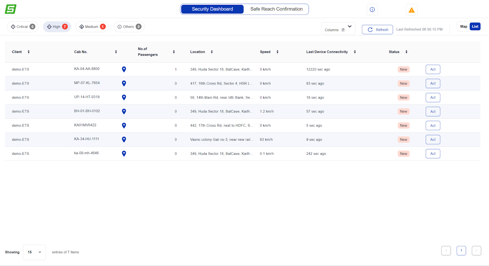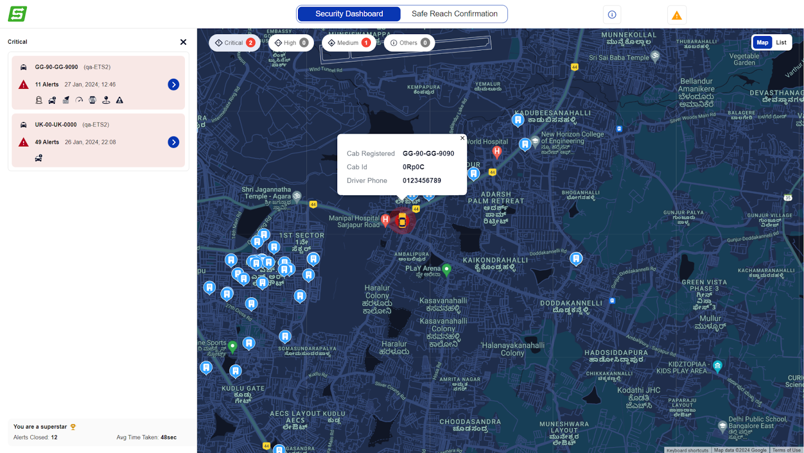 Users can easily navigate through vehicle details, passenger information, and alert specifics with just a few clicks.